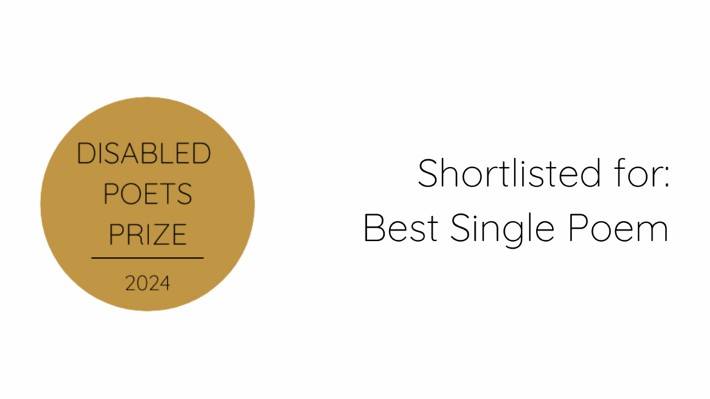 Vera Yuen’s poem was shortlisted in the Best Single Poem category for the Disabled Poets Prize 2024.