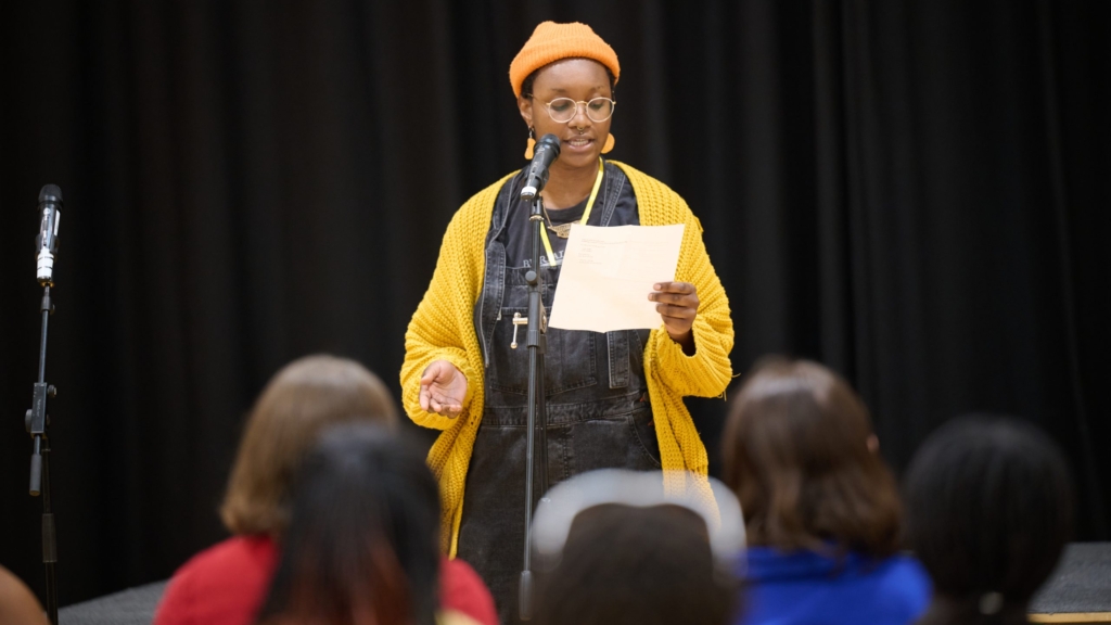 Photo: a young writer performing at Deptford Literature Festival 2024, captured by Hayley Madden.